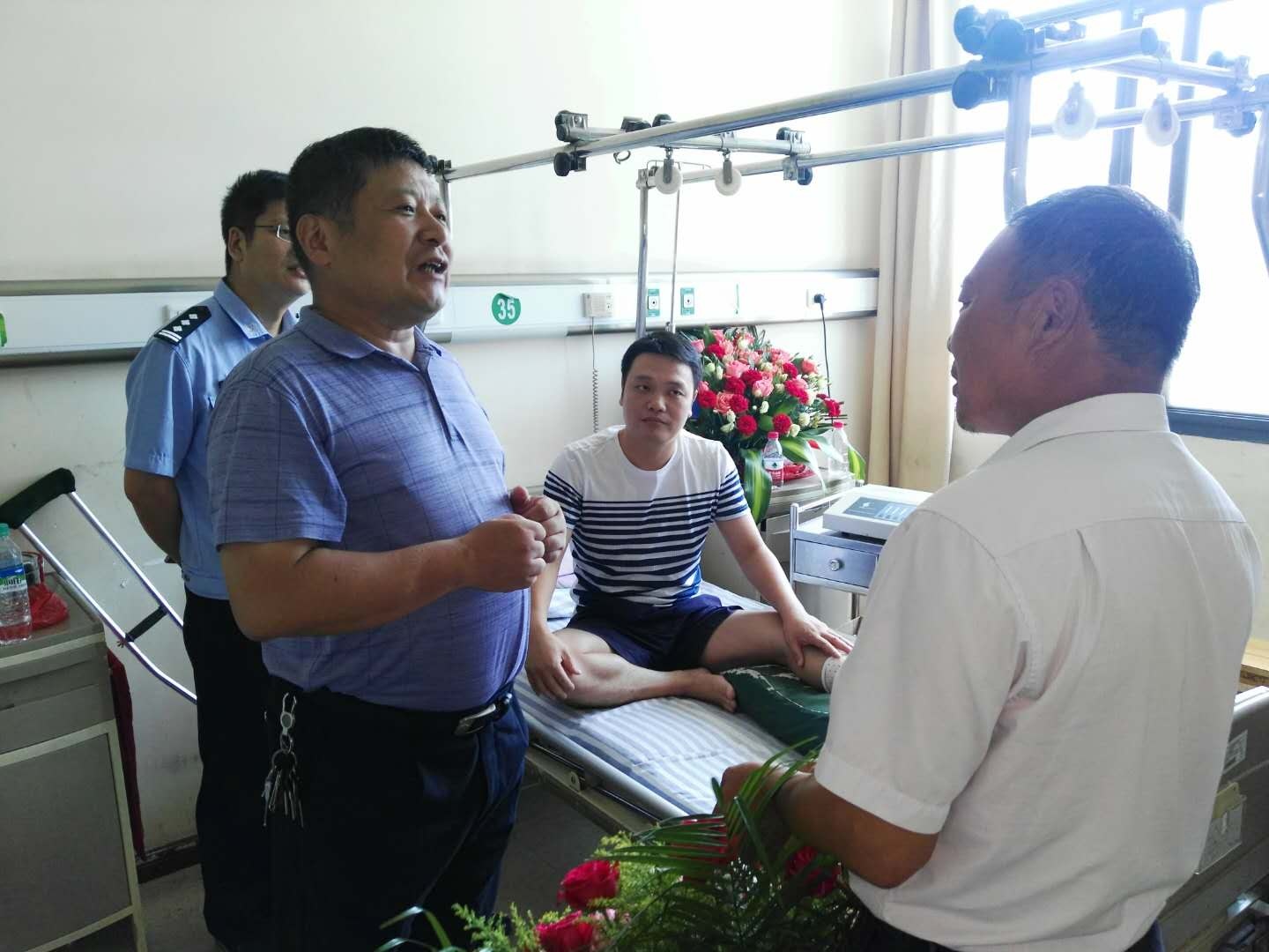 在医院里,周斌同志向刘文巍及其父亲表示了亲切慰问,送上了鲜花和慰问金,对刘文巍认真负责、敢打敢拼,临危不惧、英勇无畏的精神给予了充分肯定和高度赞扬。在详细询问了刘文巍的伤势和医治情况后,叮嘱他要安心养伤,积极配合治疗,早日恢复健康。